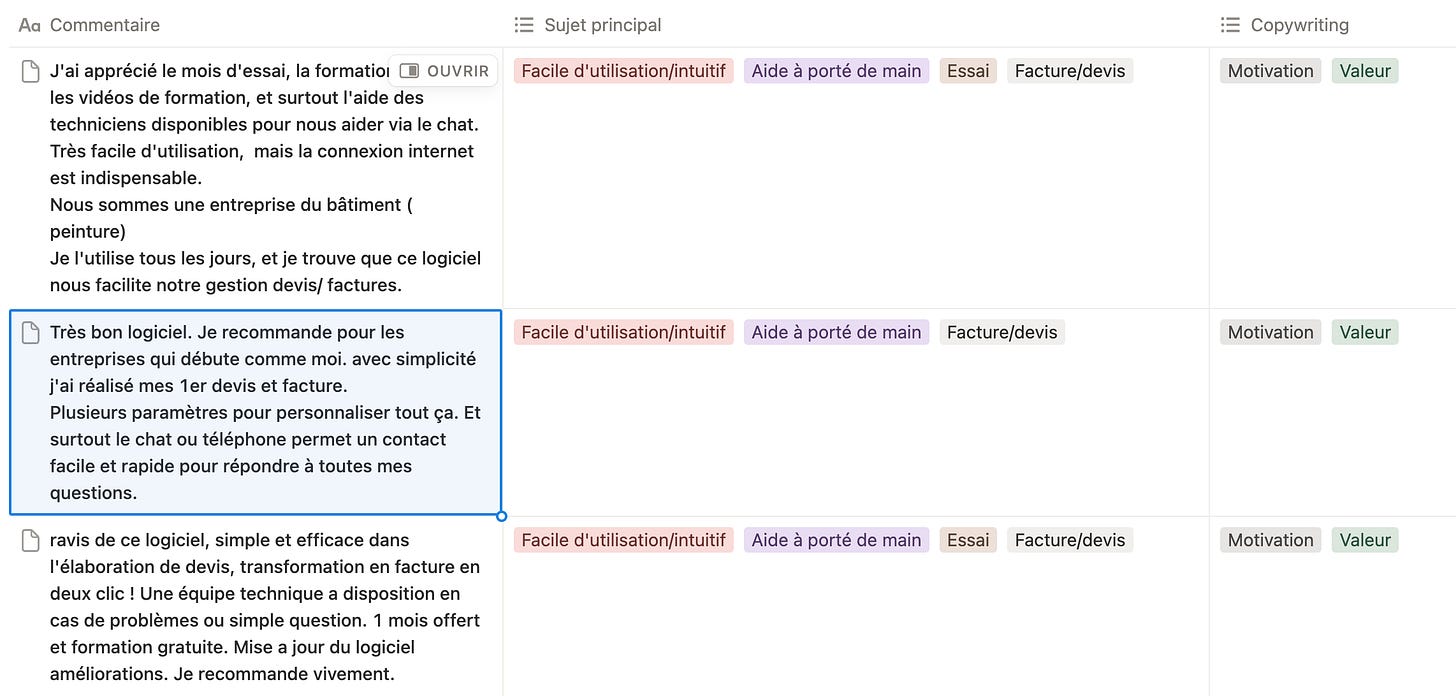Dans le tableau d’optimisation que j’utilise pour chaque client, j’utilise cette méthode.