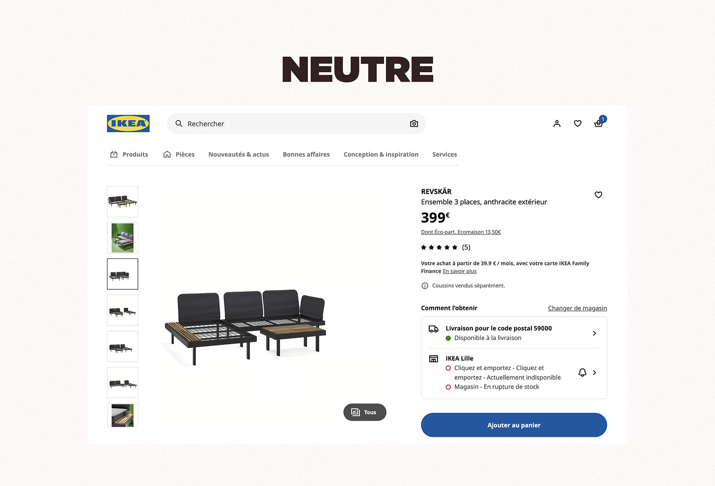 Le site d’IKEA, quant à lui, est beaucoup moins positionné.